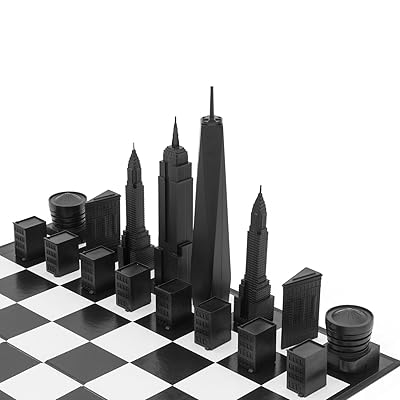 This beautiful black and white chess set features some of the most prominent buildings in the new york city skyline nyc chess set. Please specify which city you would like when checking out.
